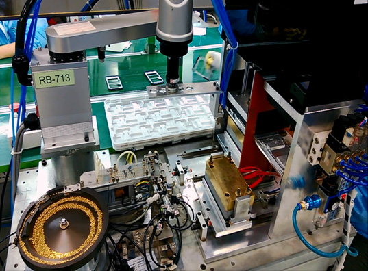 四軸機(jī)器人配合熱熔埋螺母,效率提升四倍有效節(jié)省人力提高品質(zhì)穩(wěn)定性。